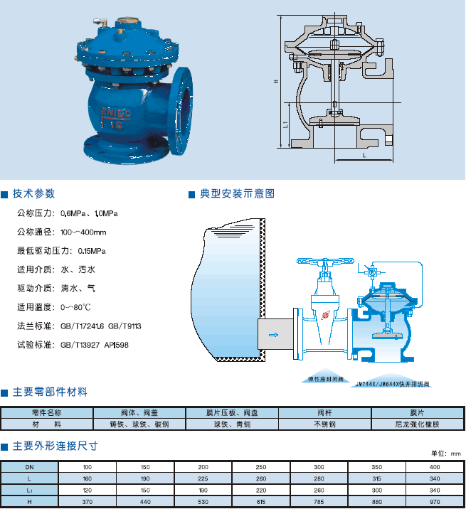 JM744X氣動快開排泥閥,是一種由液壓源或氣動源作執(zhí)行機(jī)構(gòu)的角型截斷類閥門。通常成排安裝在沉淀池底部外側(cè)壁,用以排除池底沉淀的泥砂和污物。該閥由泥龍強(qiáng)化橡膠隔膜將閥門分為兩個腔室,接通液壓或氣動源,采用電動或手動二位四通換向閥控制,實現(xiàn)快速排泥。該閥將隔膜代替活塞,無運(yùn)動摩檫,更適用于泥漿等顆粒介質(zhì),大大提高了閥門的使用壽命。 |